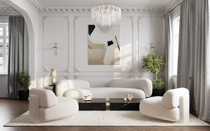 نئوکلاسیک سعی دارد بین شکوه کلاسیک و سادگی مدرن تعادل برقرار کند. در این سبک، فضا همزمان شیک و راحت است و برای خانه‌هایی با اندازه‌های مختلف، به‌ویژه متوسط، قابل اجراست. در حالی‌که فضای کلاسیک رسمی‌تر و گاه سنگین‌تر به نظر می‌رسد، نئوکلاسیک حس لوکس اما صمیمانه‌تری دارد.