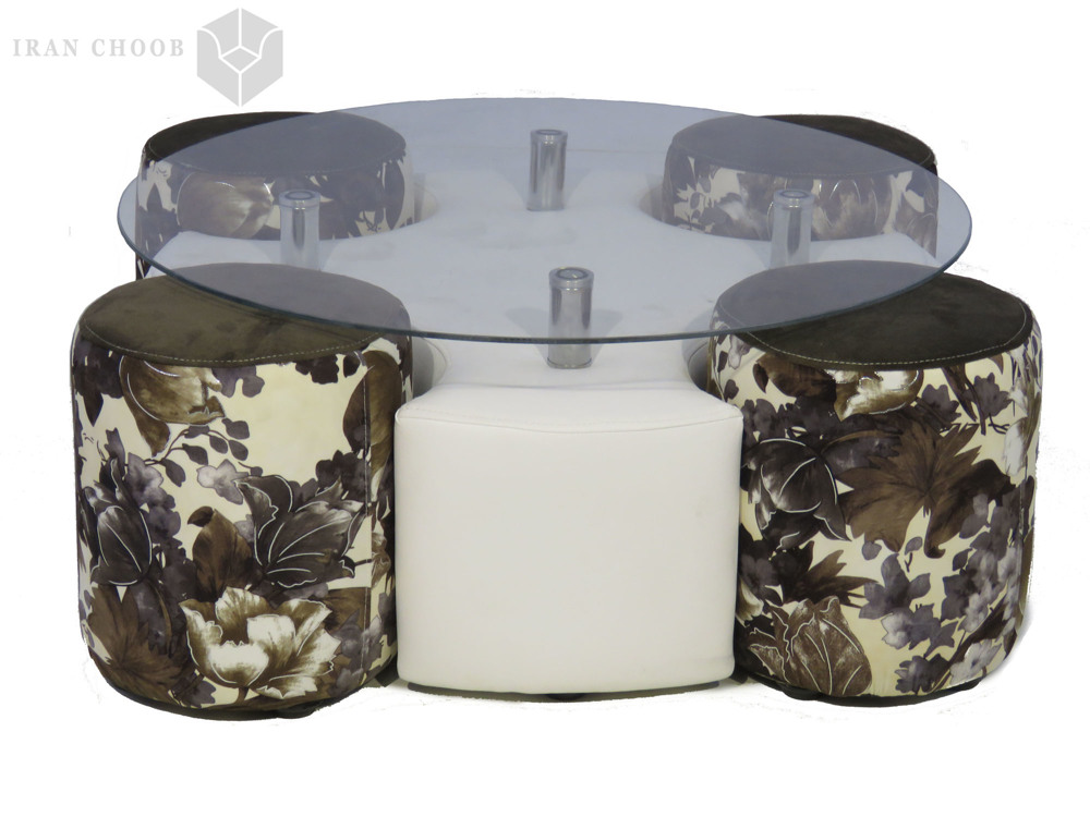 | شامل | 5 قطعه : 1 عدد میز جلو مبل (همراه با 4 عدد پاف کوچک) |