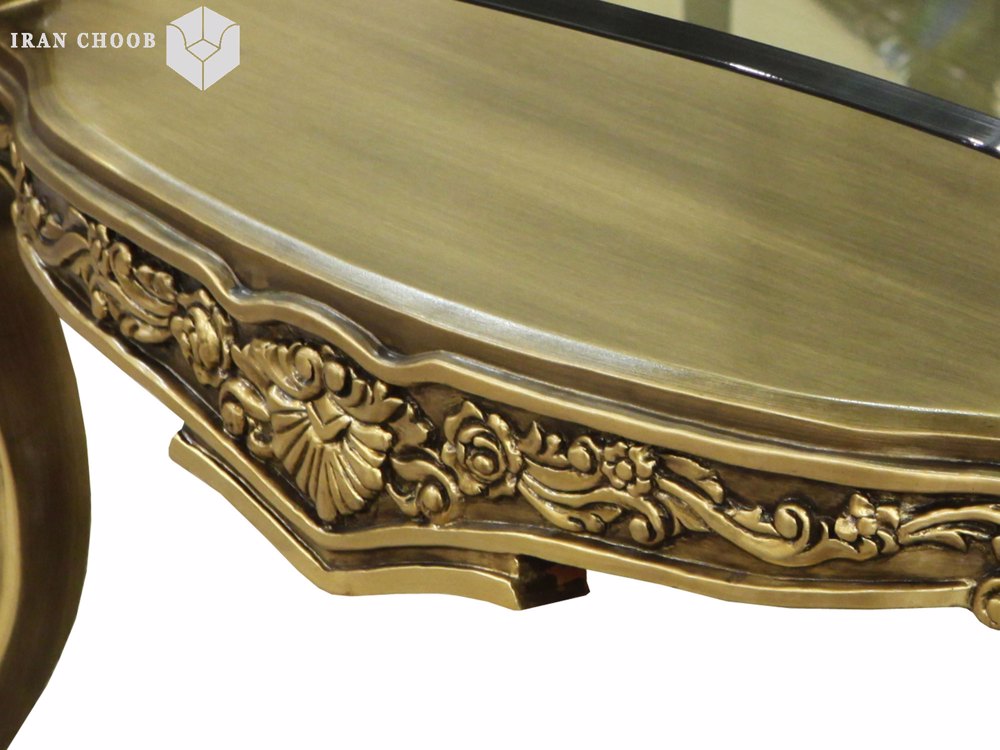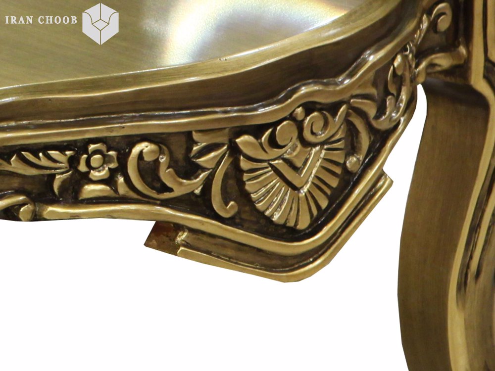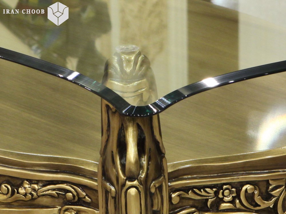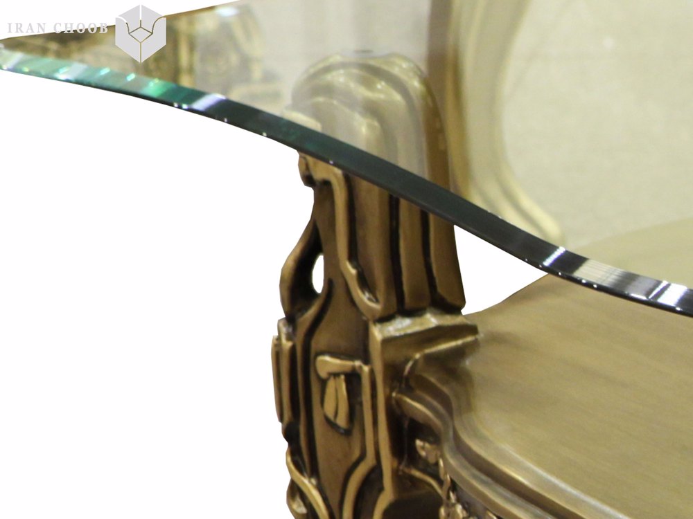 میز جلو مبل استیل جدید آسا از جهت طراجی منبت بر روی بدن ی خود کاملا مشابه قسمت تاج کاناپه سه نفره این مبل می باشد.این میز دارای دو طبقه از جنس های شیشه و چوب است.طبقه ی بالای این میز دارای شیشه ی ابزار خورده است که علاوه بر استحکام زیبایی را بر آن افزوده.پایه های از جنس چوب راش این میز جلو مبل باعث می شود تا شما با خیالی راحت لوازمی با وزن بالا را بر روی این میز جلو مبل استیل قرار دهید.