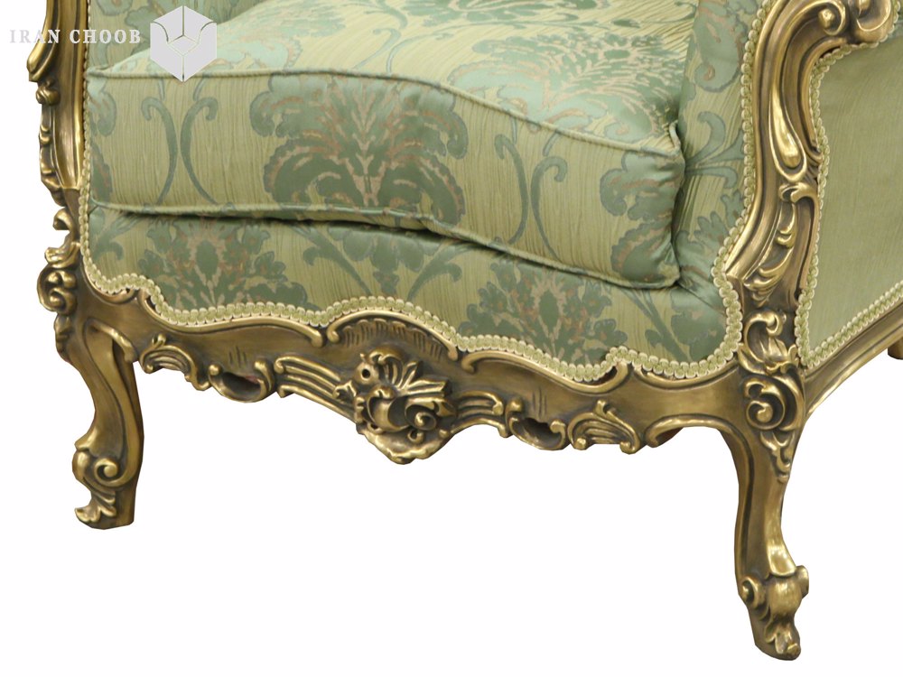 کاناپه تک نفره مبل استیل وندا در قسمت تاج بالا و پایین خود از منبت های بسیار ظریفی بهره می برد حال انکه این طراحی توام شده است با ترکیب رنگی سبز گل که جلوه و زیبایی خاصی به این کاناپه تک نفره مبل استیل افزوده است.بدنه ی این مبل استیل کاملا از چوب راش است که با توجه به پوشش ورق طلا بر روی این بدنه علاوه بر کیفیت و استحکام بالا زیبایی خود را حفظ نموده.