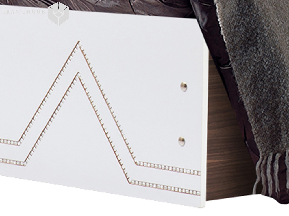 تخت خواب نیگاس بر روی قسمت هایی همانند تاج بالا و پایین دارای خطوط بسیار ظریف و دقیق نگین است که زیبایی این محصول را دو چندان ساخته.همچنین در قسمت تاج بالا این تخت خواب محفظه ای جهت قرار گیری لوازم تزئینی و یا حتی کتب تعبیه شده که علاوه بر ایجاد کارایی نوعی خلاقیت برای این تخت خواب به ارمغان آورده است.