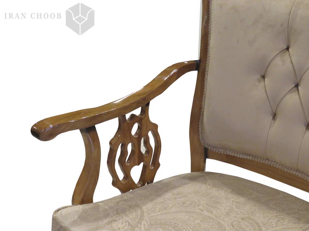 کاناپه سه نفره مبل کلاسیک چنگ شاخدار دارای بدنه از بهترین نوع چوب است. این مبحث باعث آن خواهد شد که ظرافت به کار رفته در برش های قسمت هایی از این مبل از قبیل دسته و تاج باعث عدم استحکام آن نشود. حال اینکه قرار گیری کیفیت رنگ بالا بر روی این چوب جدا از مبحث زیبایی کلی مبل باعث هویدا شدن رگه های طبیعی چوب شده است. در قسمت میانی این کاناپه سه نفره یک پایه تعبیه شده که مانع از آن می شود تا در برخورد های ناگهانی به کلاف میانی این مبل کلاسیک مسائلی مانند شکستگی بوجود آید.