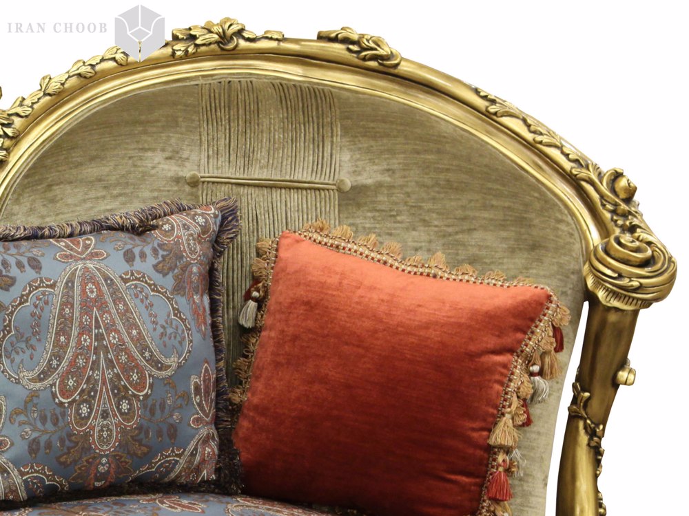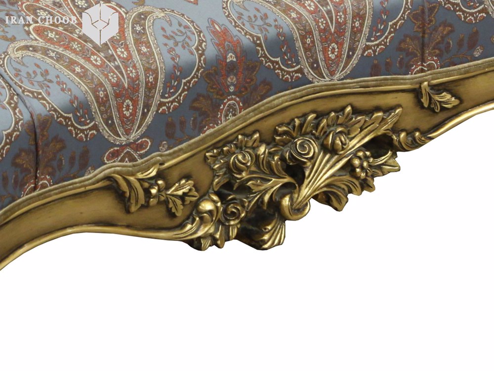 شزلون مبل استیل جدید زرین از جمله بخش های این ست مبل است که علاوه بر زیبایی نوعی خلاقیت به آن افزوده. منبتهای به کار رفته بر روی بدنهی این مدل مبل با توجه به پوشش ورق طلای خود جلوهی خاصی پیدا نموده. نشیمن این محصول دارای پارچه از رنگ آبی با گلهای تو در تو است که زیبایی آن را دو چندان ساخته.