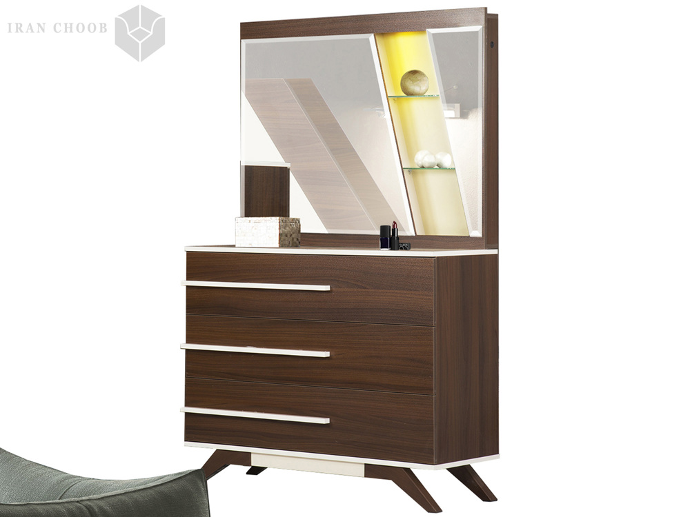 دراور و قاب آینه سرویس خواب ویرا چه از نظر ترکیب رنگی و چه از نظر استفاده از بهترین یراق آلات کاملا مشابه تخت خواب آن است.قسمت قاب آینه سرویس خواب ویرا از جمله قسمت های بسیار زیبا این محصول به شمار می آید.تعبیه دو طبقه از جنس شیشه در میان این قاب آینه که توام شده است با نور مخفی به کار رفته در همین قسمت جلوه ی خاصی برای این قاب آینه ایجاد نموده.