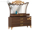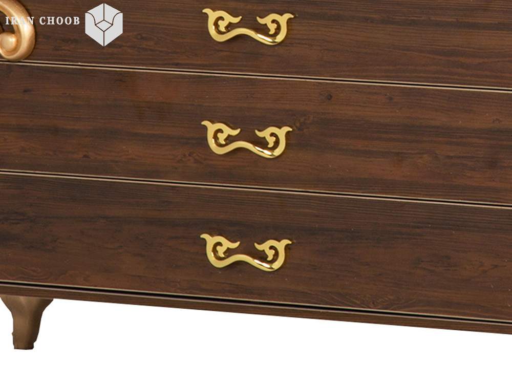 دراور و فاب آینه سرویس خواب روشا با توجه به کشو های تعبیه شده بر روی بدنه ی آن و همچنین طراحی مدرن-کلاسیک این محصول می تواند از جمله انتخاب های بسیار مناسب برای اتاق خواب شما باشد.این دراور دارای سه کشو عریض جهت قرار گیری البسه و همچنین یک کشو به نسبت باریک تر برای لوازم شخصی شما نیز می باشد.از دیگر بخش های بسیار زیبا سرویس خواب روشا قاب آینه آن است.این قاب آینه با توجه به ابعاد بسیار مناسب آن و همچنین طرح و منبت های به کار رفته بر روی تاج خود می تواند زیبایی و جلوه ی خاصی برای محیط قرار گیری خود به ارمغان آورد.